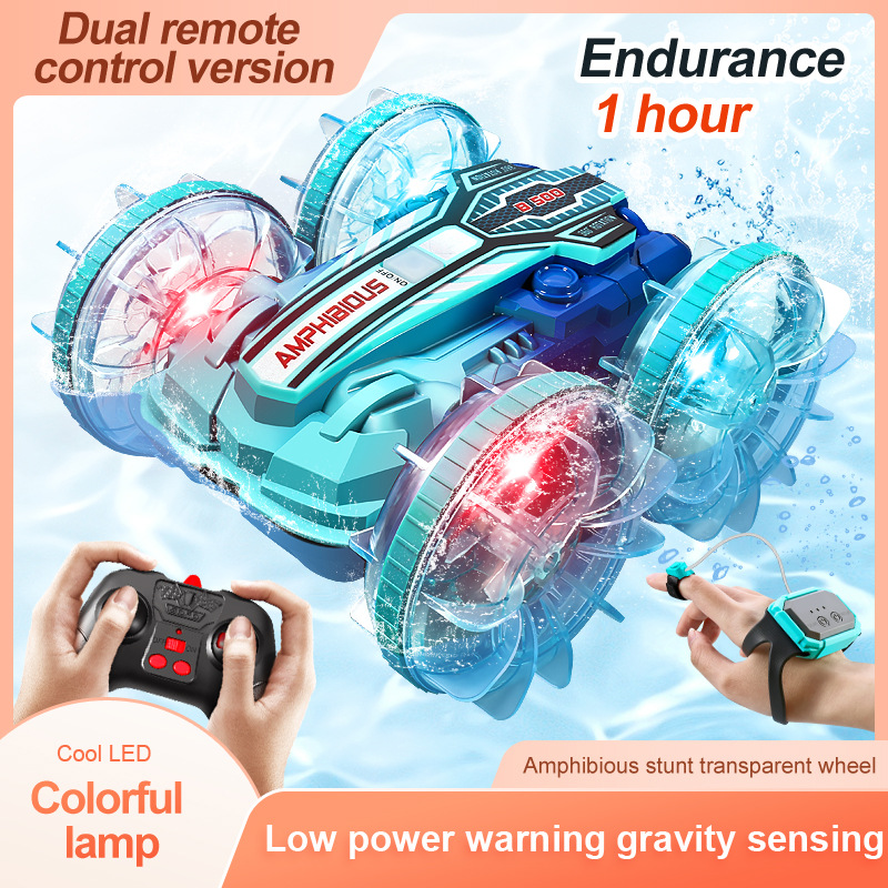 Colorful light wheel double-sided stunt amphibious remote control car watch dual control four-wheel drive power
